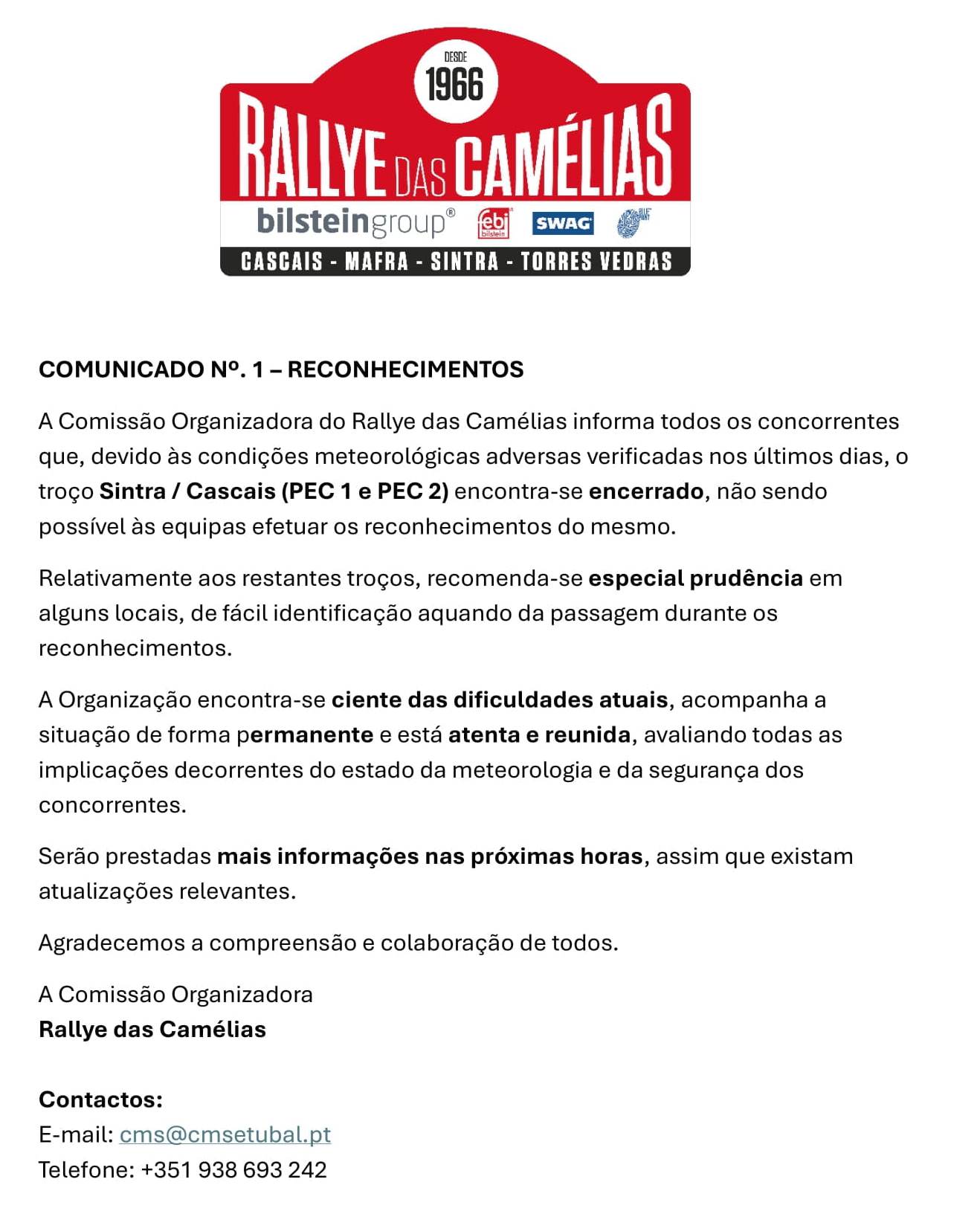 O Bilsteingroup Rally das Camélias 2026 será realizado nos dias 20 e 21 de fevereiro, pela primeira vez, o formato terá dois tipos de participação, são eles: