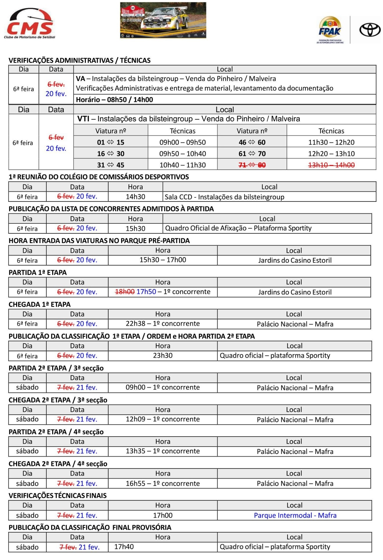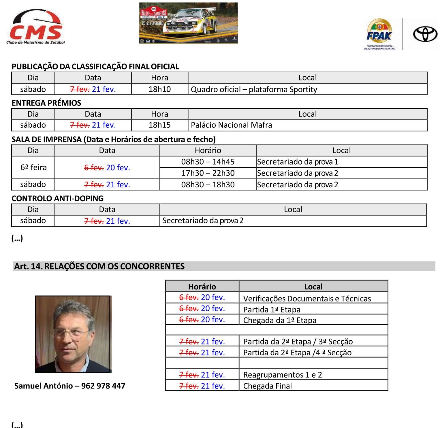 Devido ao adiamento do rali, os documentos referentes ao mesmo tiveram de ser alterados, brevemente as modificações dos documentos oficiais serão aprovadas pela FPAK e nessa altura serão inseridas neste site.